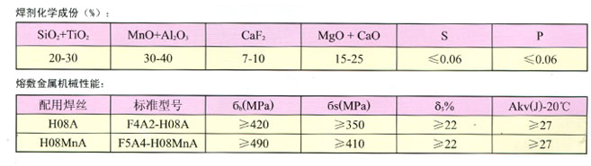 配合適當焊絲(H08A、H08MnA)可用于焊接鍋爐,管線鋼及普通結構鋼等。