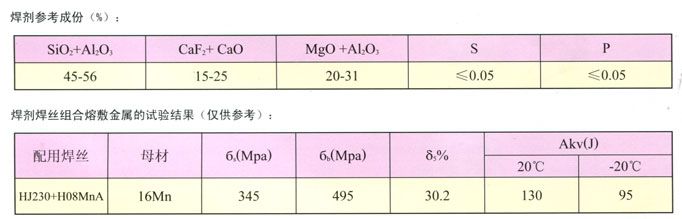 配合H08MnA,H10Mn2焊絲及某些低合金鋼焊絲,焊接低碳鋼或某些低合金鋼(如:16Mn等)結構。